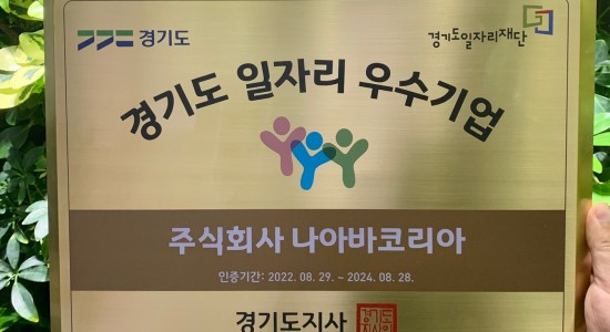 나아바코리아, 경기도 '2022년 일자리 우수기업' 선정